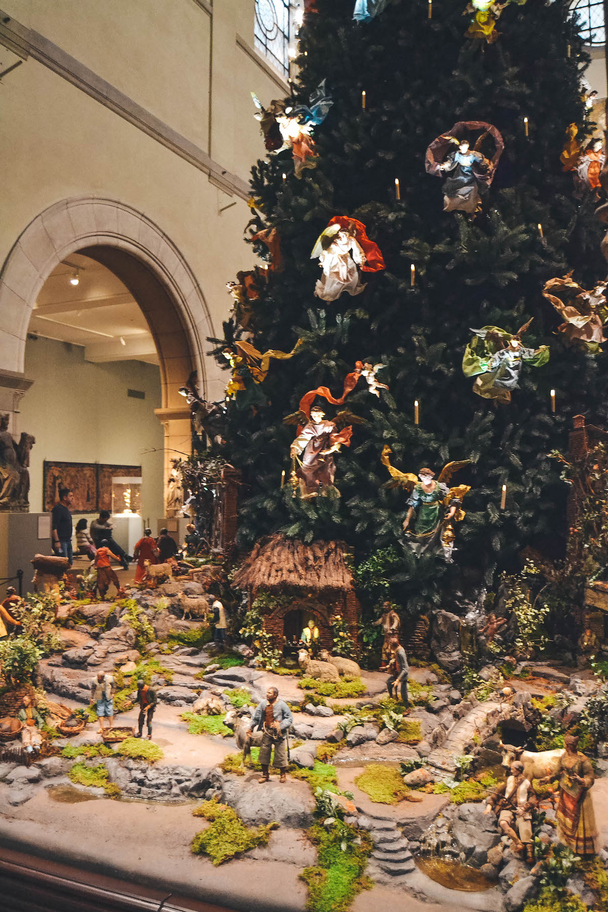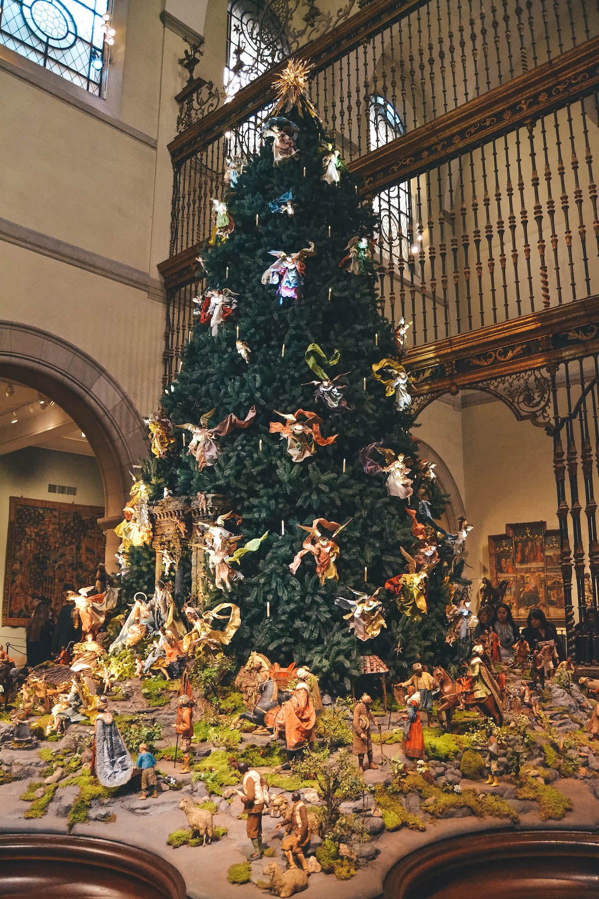 The Christmas tree at the Met is my absolute favorite. It’s a 20-foot blue spruce with an 18th century Neapolitan nativity scene at its base. You can find the tree in the medieval sculpture hall in front of an old choir screen. The nativity scene is one of a kind and has so many intricate details to it.